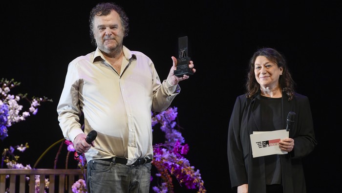 - İksv Onur Ödülü Pippo Delbono'ya... Pippo Delbono’ya ödülünü İstanbul Tiyatro Festivali Direktörü Leman Yılmaz sundu.