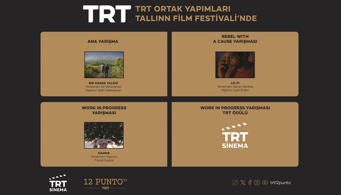 Dünyanın en prestijli film festivallerinden olan ve bu yıl 7-23 Kasım tarihleri arasında 29. kez düzenlenecek olan Tallinn Black Nights Film Festivali’nde 3 TRT ortak yapımı yarışacak. Ali Vatansever’in yönettiği, Selin Vatansever’in yapımcılığını üstlendiği Türkiye-Yunanistan-Romanya ortak yapımı “Bir Arada Yalnız”, dünya prömiyerini Tallinn’de Ana Yarışma bölümünde gerçekleştirecek. Alican Durbaş’ın yönettiği, İpek Erden’in yapımcılığını üstlendiği TRT ortak yapımı “Lo-Fi” filmi, dünya prömiyerini Tallinn’de “Rebel With a Cause” (Bir Nedeni Olan Asi) bölümünde gerçekleştirecek. Faysal Soysal’ın yönettiği ve yapımcılığını üstlendiği Türkiye-Bulgaristan-Yunanistan-İtalya ortak yapımı, TRT destekli “Rahma” filmi ise Tallin Film Festivali’nin endüstri bölümü olan “Industry@Tallinn”de kurgu aşamasındaki projelerin yarıştığı Work in Progress kategorisinde yarışacak.